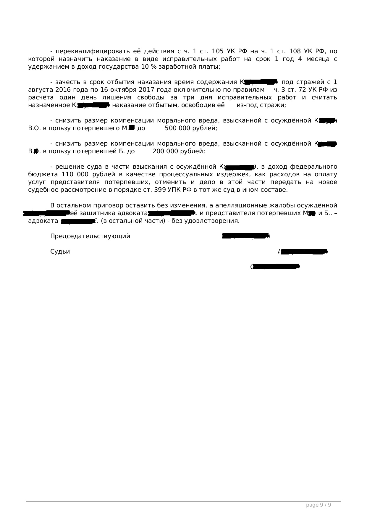 Апелляция по 105 УК Переквалификация на 108 УК